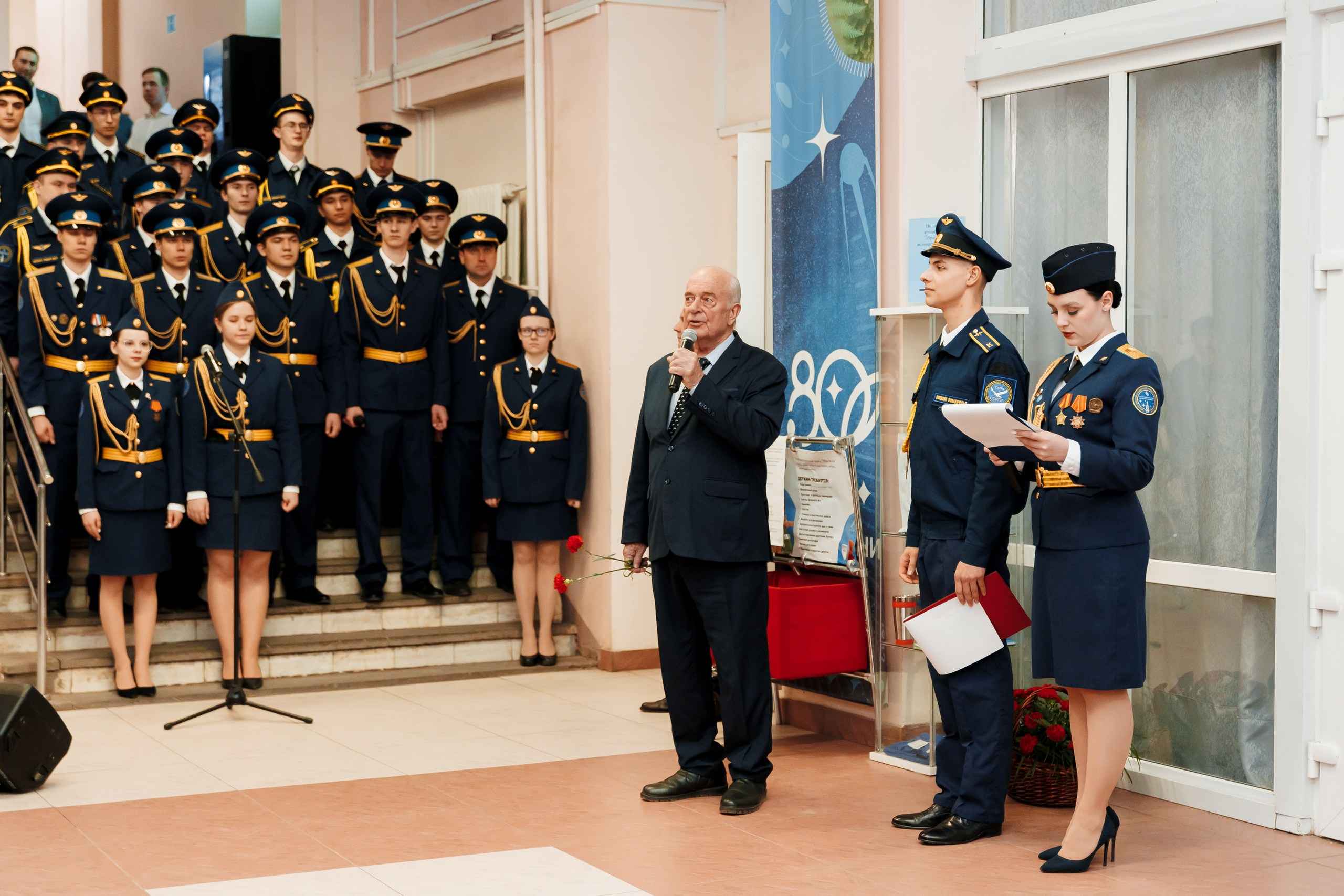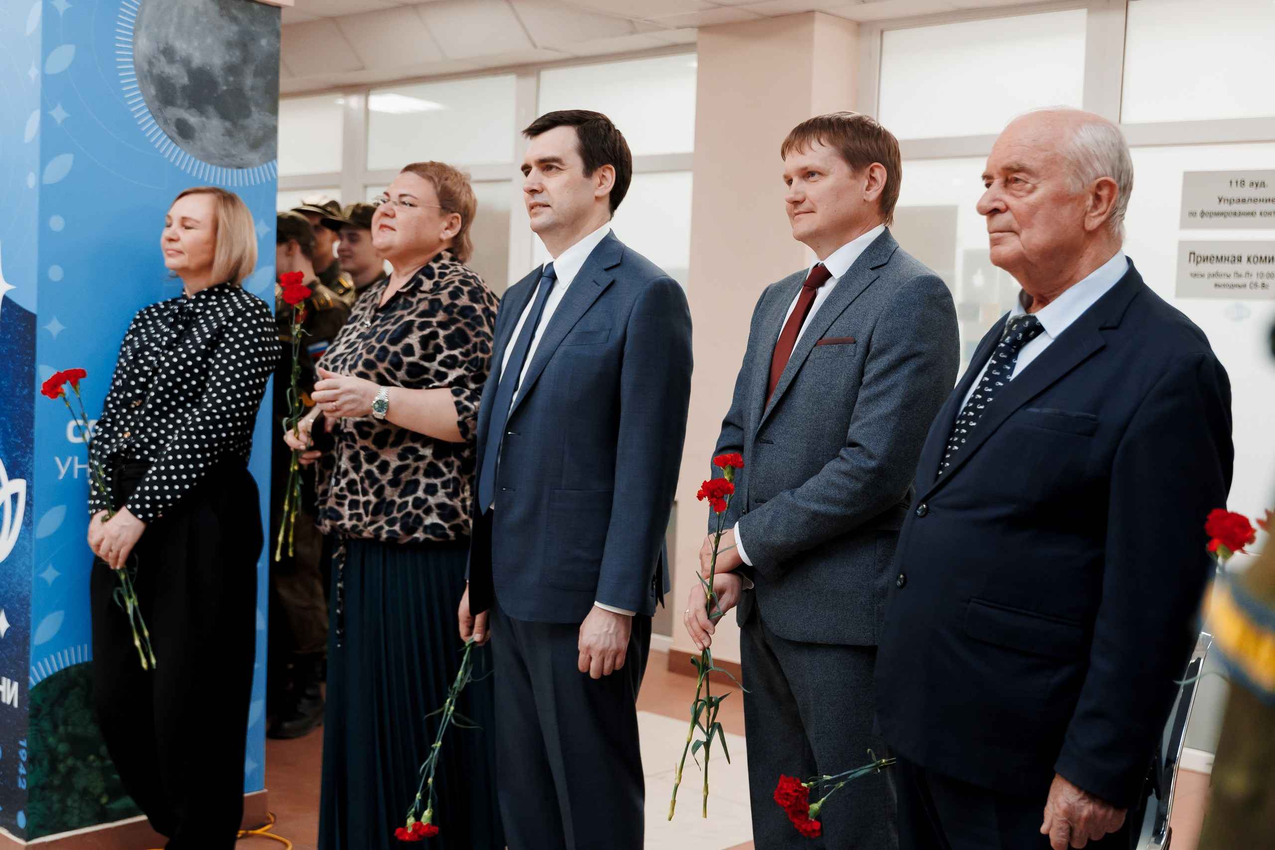 В пятницу, 10 апреля, накануне Дня космонавтики в холле 3 корпуса состоялось торжественное собрание коллектива университета. Событие вызвало интерес у студентов, сотрудников, ветеранов, курсантов и офицеров военного учебного центра.