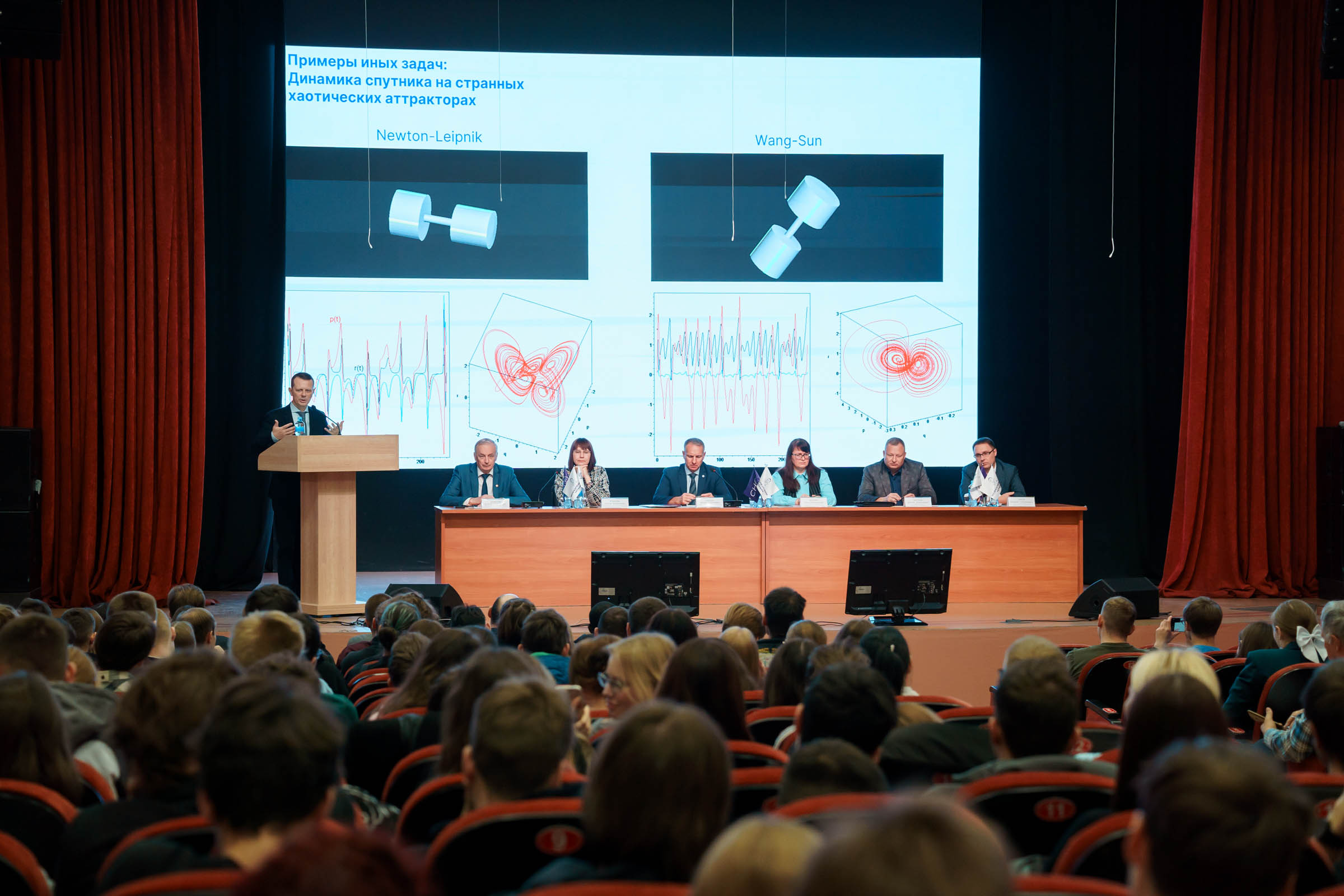 Участники конференции наблюдали визуализацию парадоксальных эффектов вращения, возникающих в процессе нацеливания космических аппаратов на нужный объект. Были показаны оригинальные примеры того, как можно извлечь пользу из хаоса в динамике спутника, а также переход спутников на незапланированные орбиты из-за тонких эффектов при истечении реактивной струи.