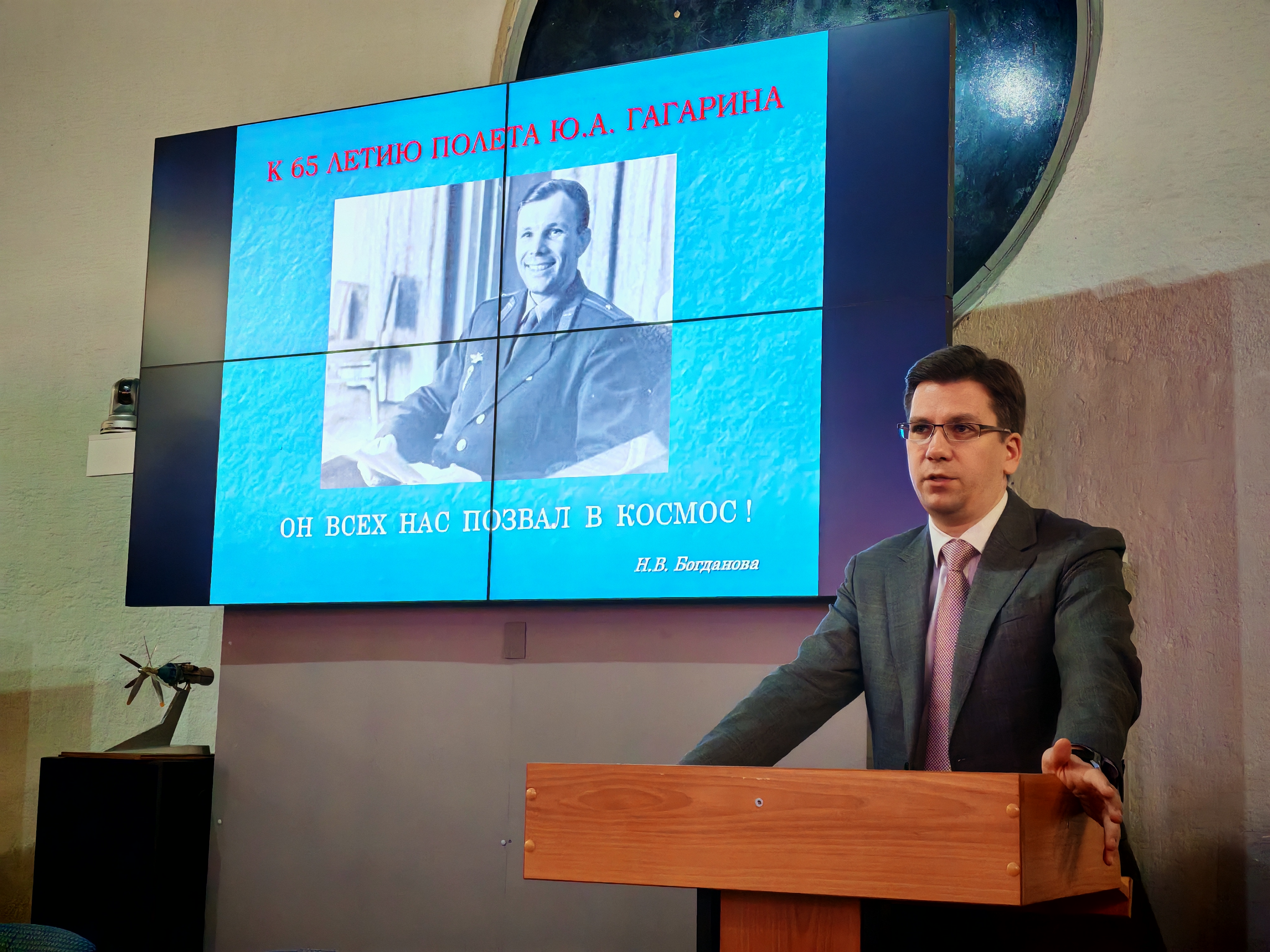 Подробно директор музея остановилась на биографии первого космонавта.