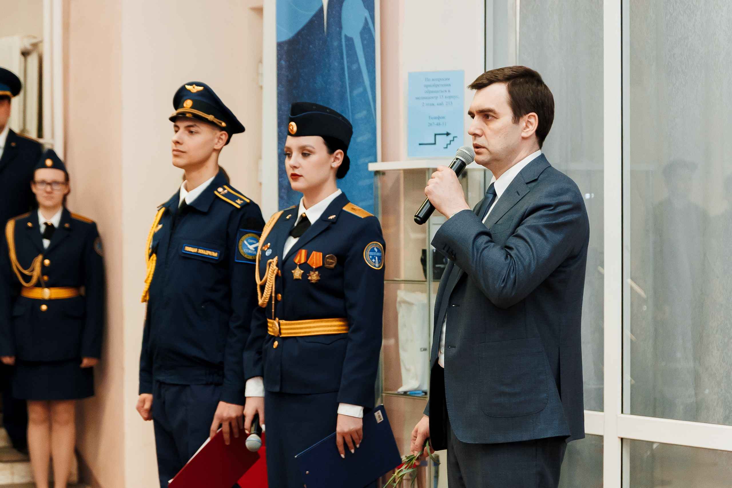 В пятницу, 10 апреля, накануне Дня космонавтики в холле 3 корпуса состоялось торжественное собрание коллектива университета. Событие вызвало интерес у студентов, сотрудников, ветеранов, курсантов и офицеров военного учебного центра.