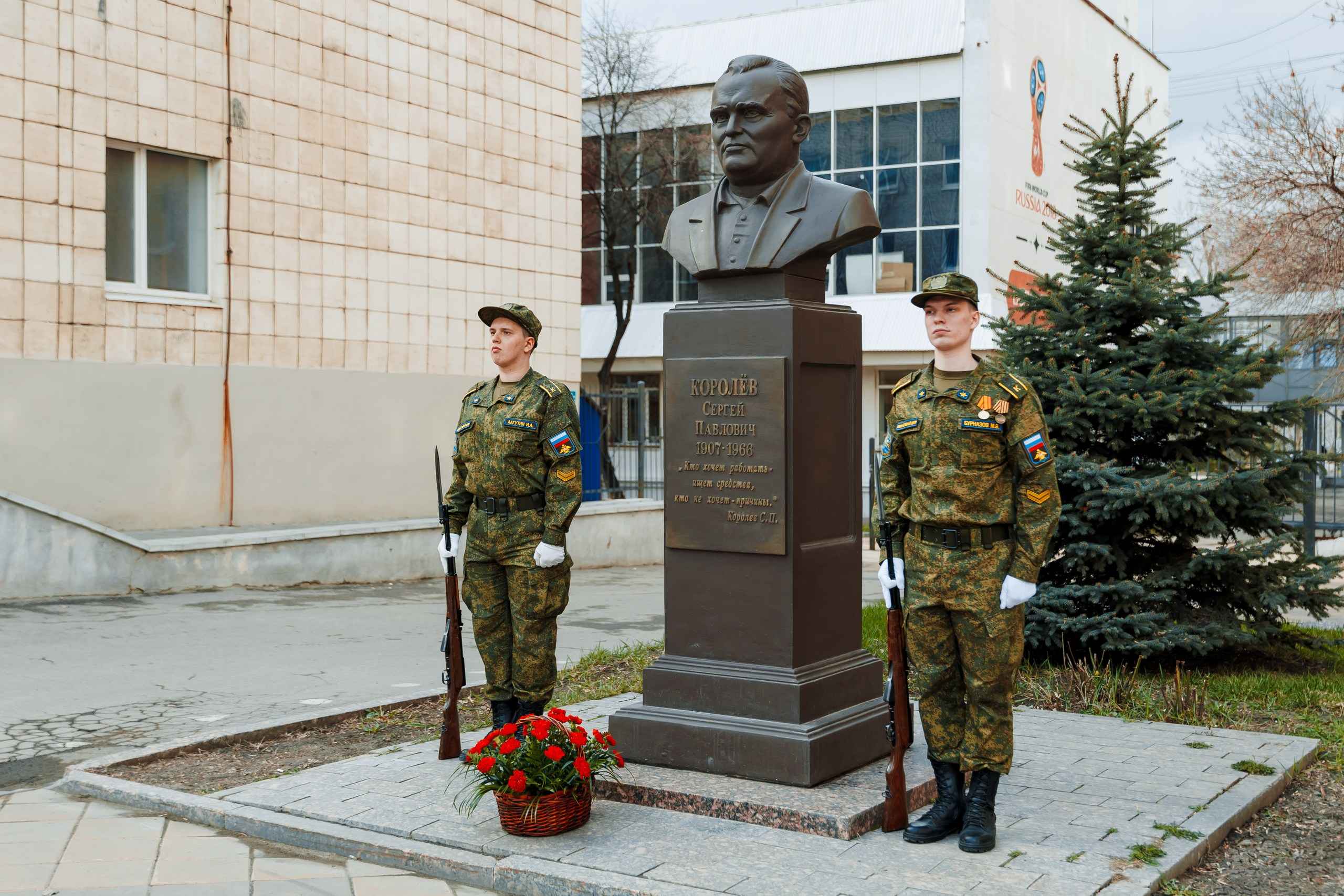 Завершилось собрание возложением цветов к горельефу Сергея Павловича Королёва. А под финальные аплодисменты хористы "Поющая эскадрилья" исполнили знаменитые строки "И снится нам не рокот космодрома…" Подпевали пронзительной композиции все, и это стало настоящей кульминацией праздника.